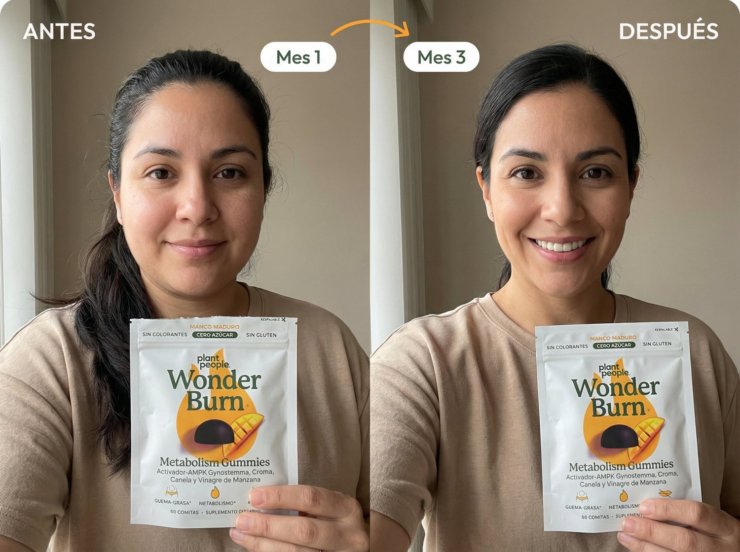 WonderBurn no contiene cafeína ni estimulantes fuertes. Su energía proviene de ingredientes naturales que activan el metabolismo sin causar ansiedad, insomnio ni taquicardia